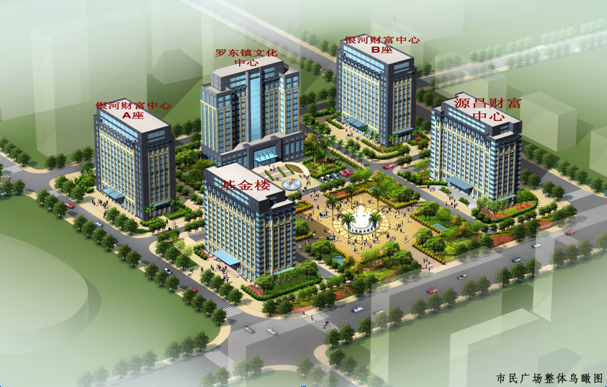 2010年10月,占地面积45亩,总建筑面积约11.5万平米,投资2.5亿的的文化中心、市民广场进行开工建设,目前文化中心区域写字楼及市民广场建设已交付使用。(附:市民广场效果图)。
